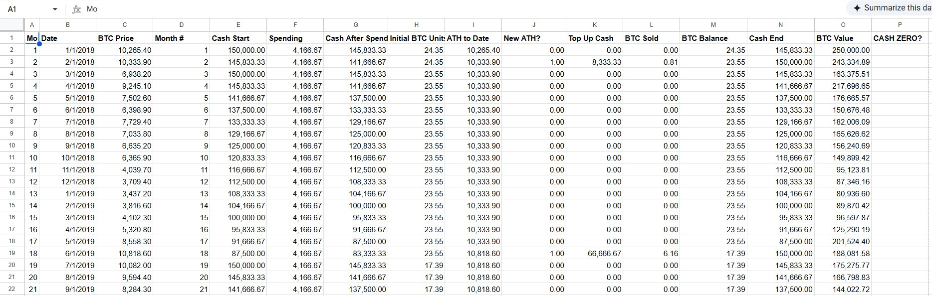 Walks forward month by month using historical BTC prices
